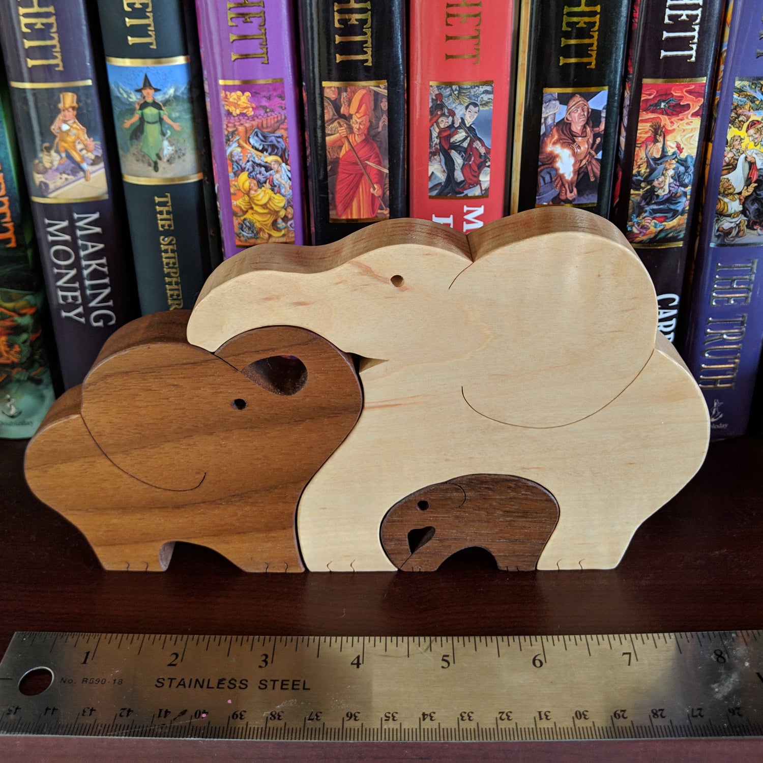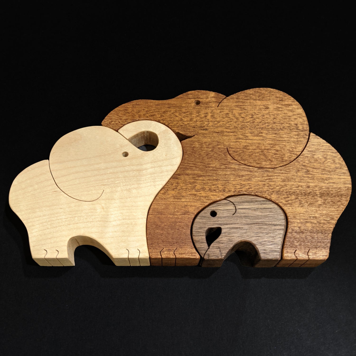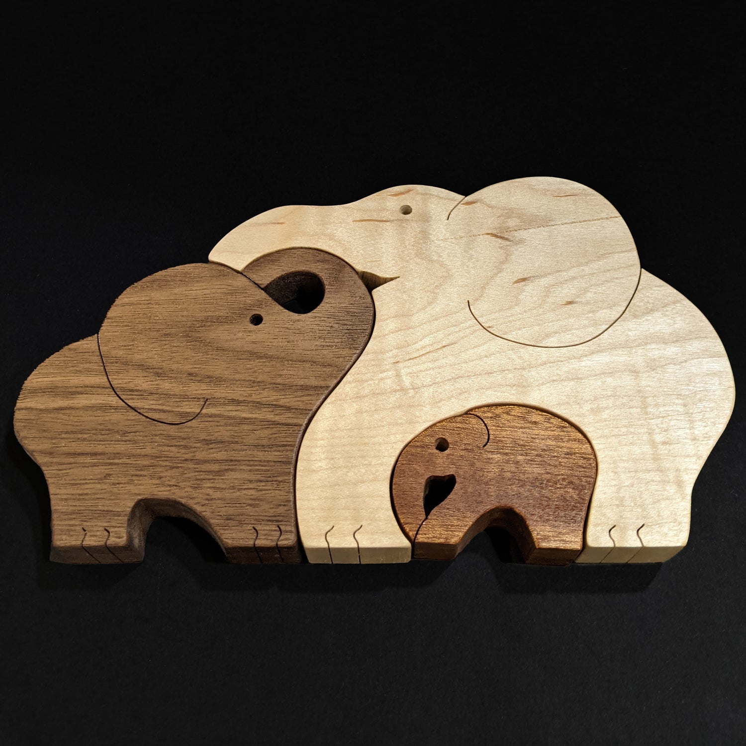 Cute interlocking elephant family. Makes a great gift for new parents, or to decorate a baby nursery.