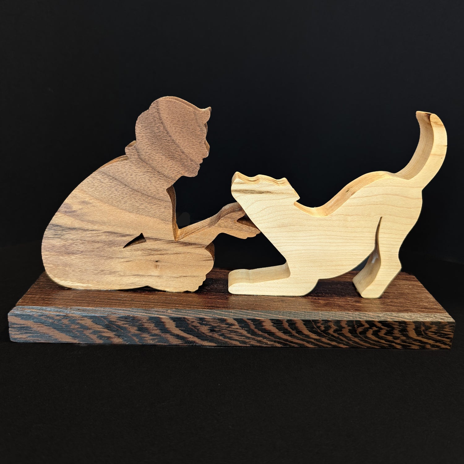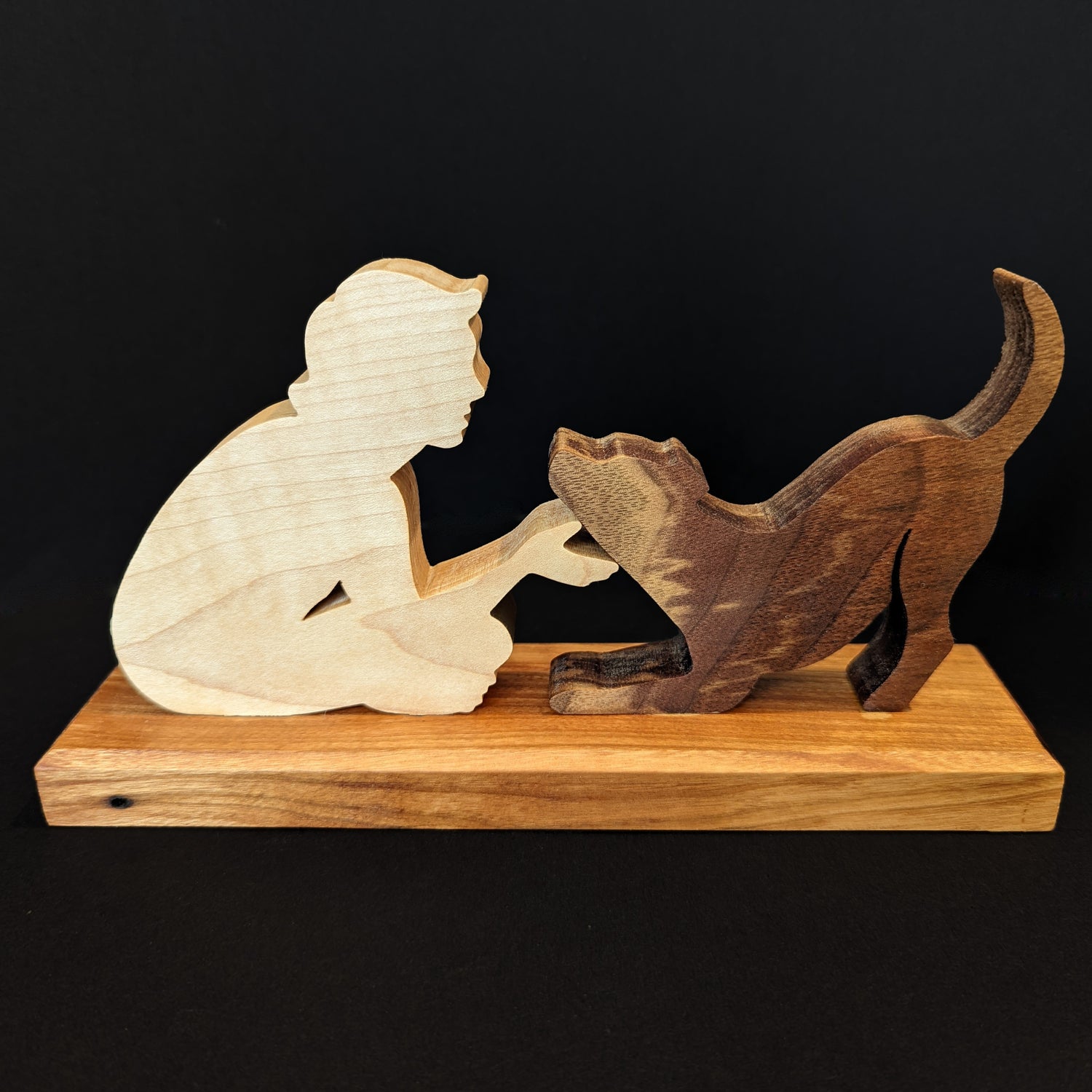 'Doggo' is another in a series of commissioned original designs by Goderich artist, Bethany Davidson brought to life in the workshop of PaulTheMaker. This moment of connection between a dog and their companion was cut by hand from various species of hardwood and finished with tung oil.