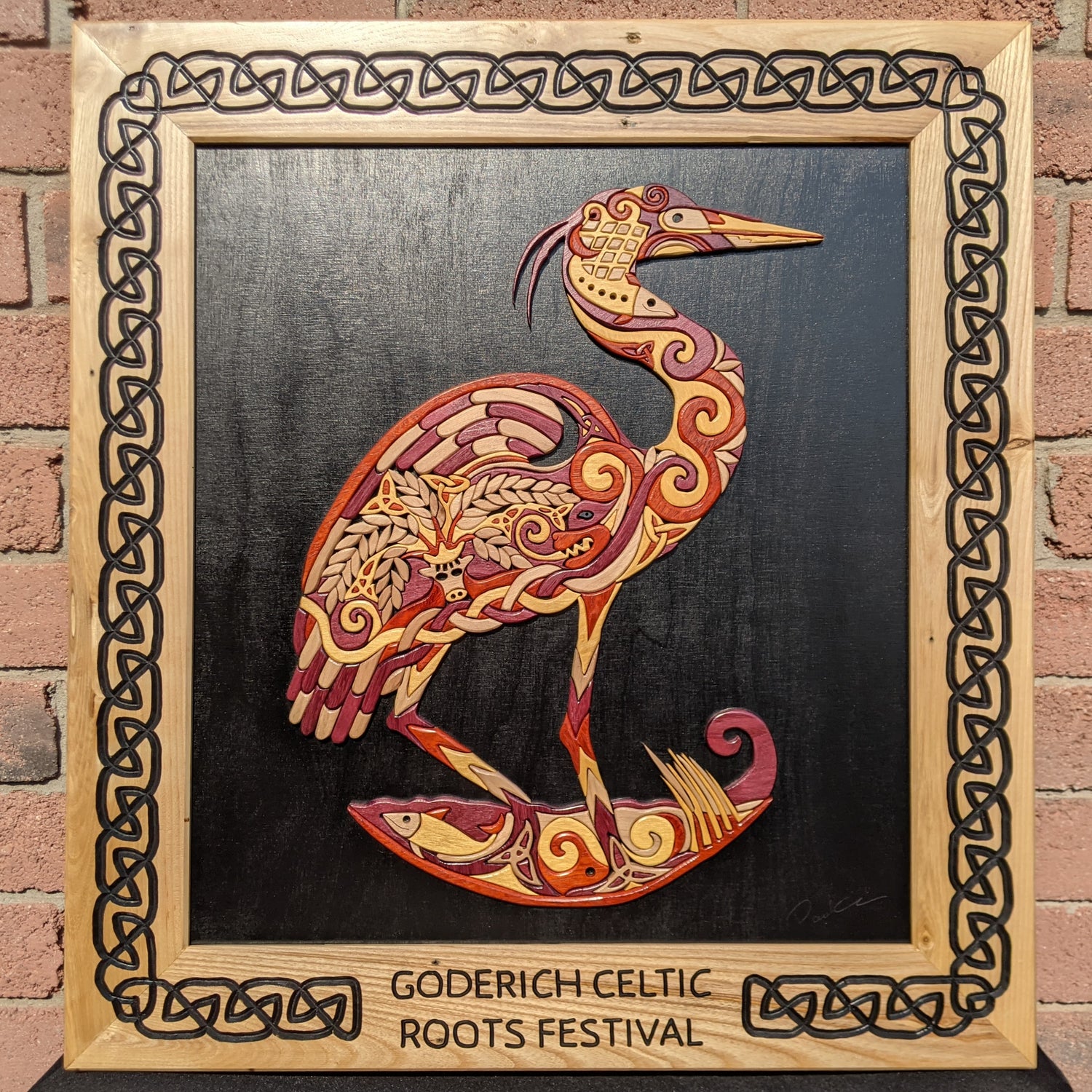 Goderich Celtic Roots Virtual Festival 2021 'Huron Heron' Intarsia Artwork