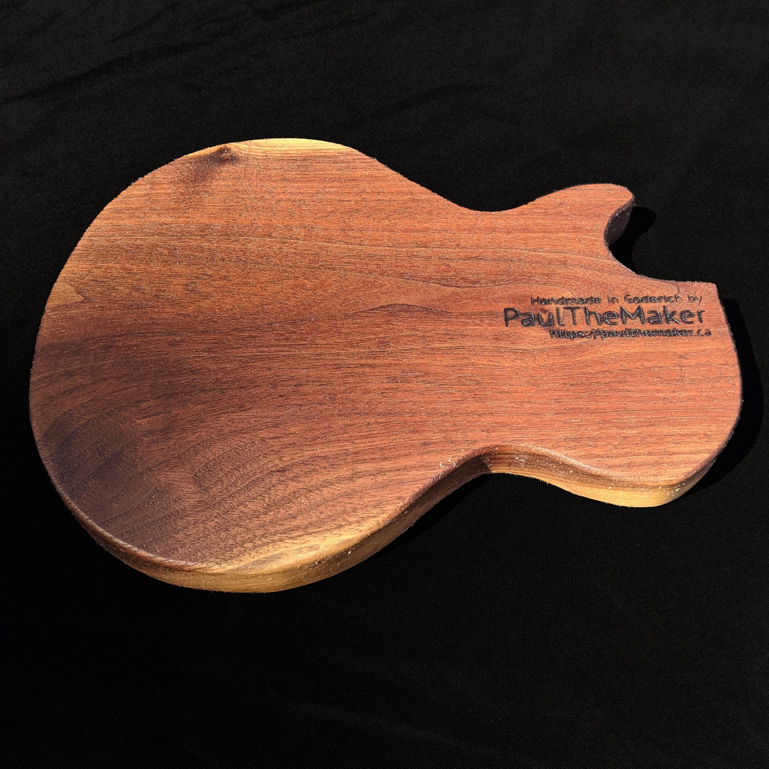 These boards, available in three iconic guitar shapes, are handmade using solid walnut. Approx 10" x 7 1/2" x 7/8" finished with my own blend of food grade mineral oil and local beeswax. There is one available without the beeswax (for a vegan option), but I can always add the wax finish.