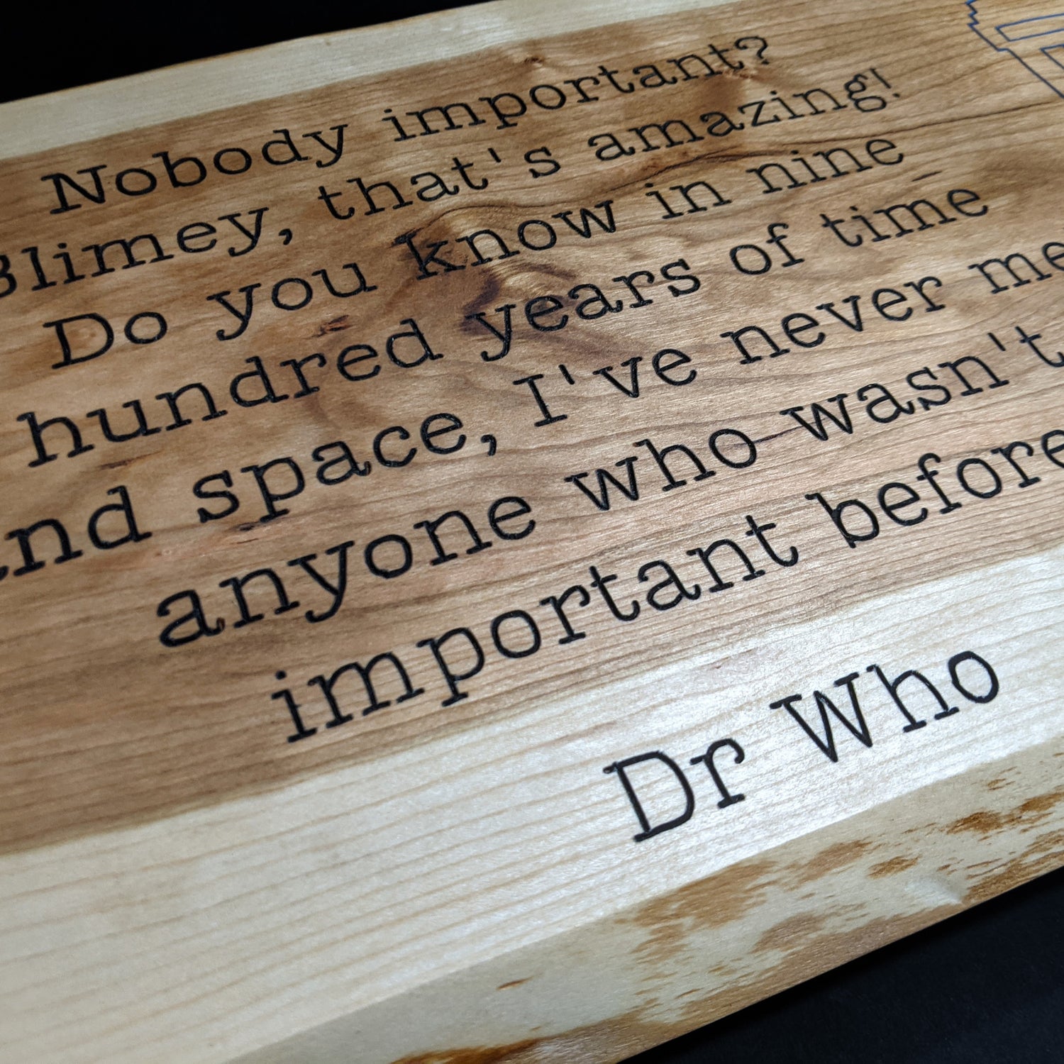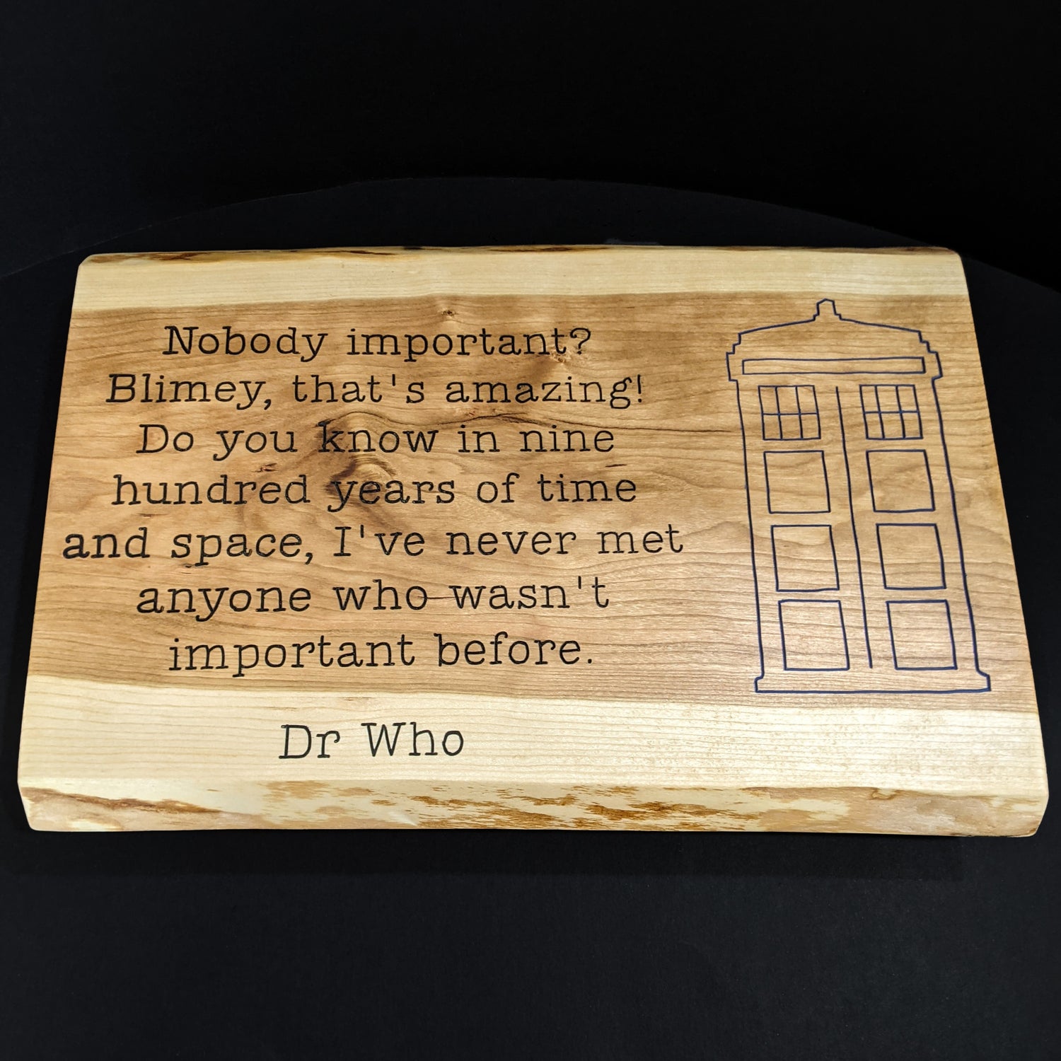 Live Edge Engraved 'Dr Who & Tardis' Sign