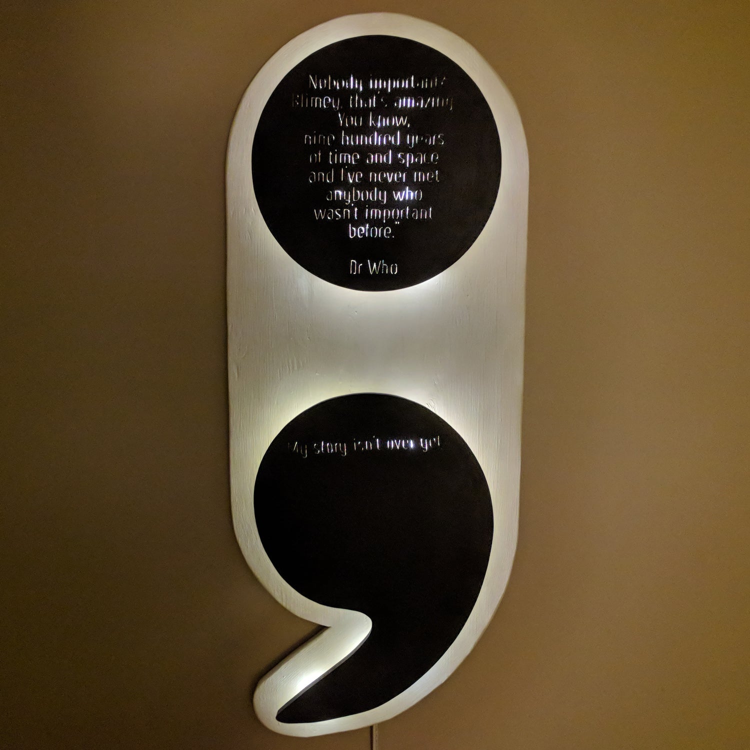 'Nobody Important' Dr Who Quote Backlit Semicolon Handmade Sign