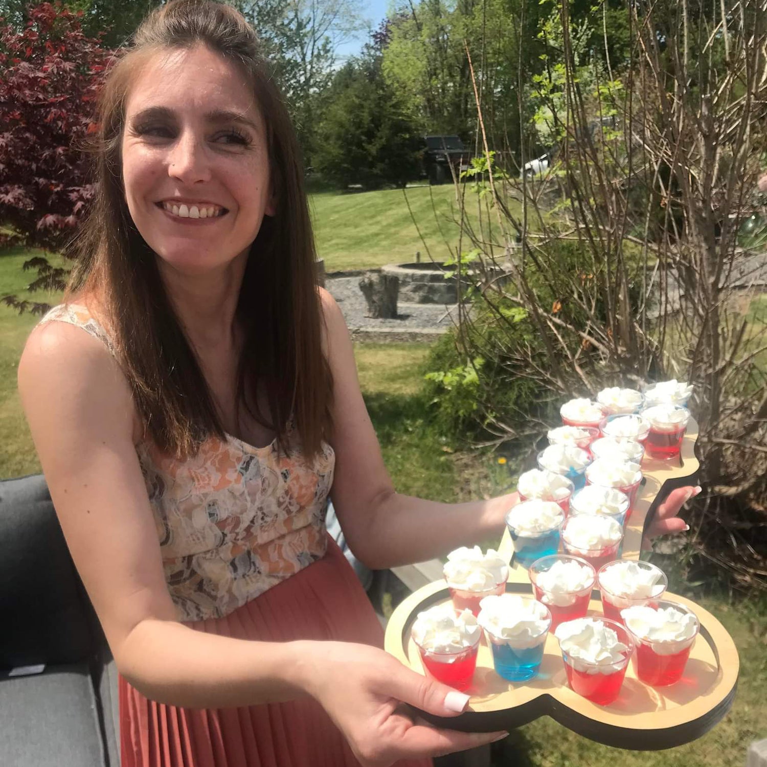Hand made with high quality Baltic birch plywood, with a polyurethane finish. Clean with a damp cloth and a mild detergent. Do not put in dishwasher, or immerse in water. Try to avoid the wet patch.