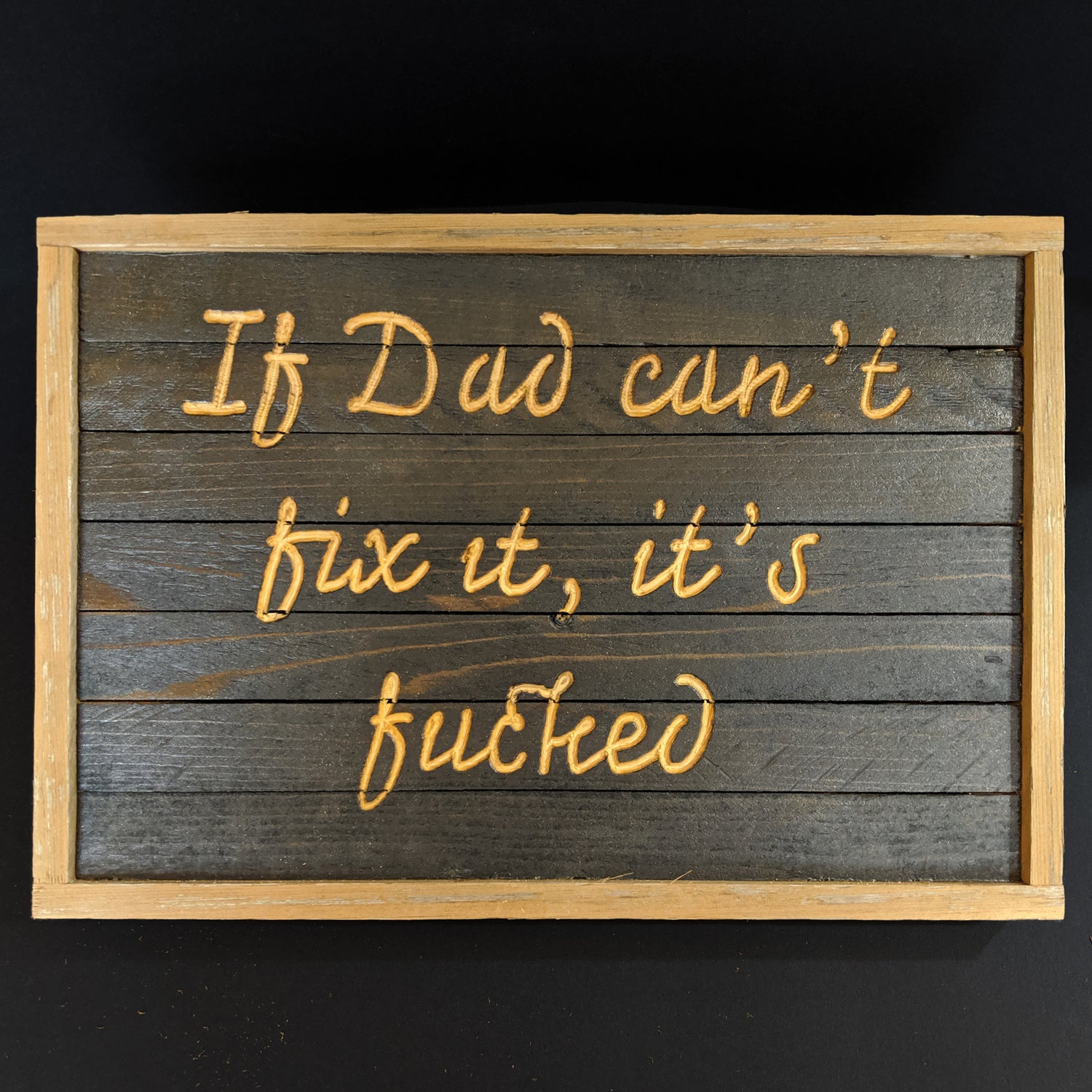 Reclaimed Wooden Engraved 'If Dad can't fix it' Sign