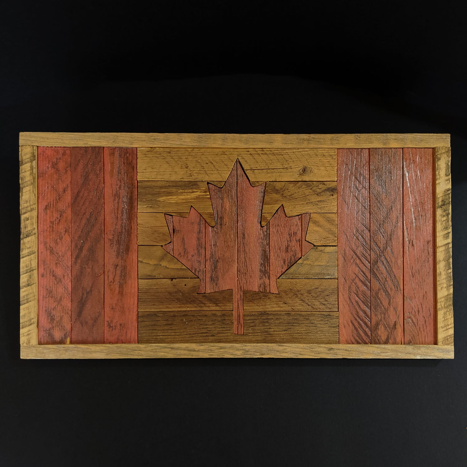 Handmade reclaimed tobacco stick Maple Leaf, Canadian Flag.
