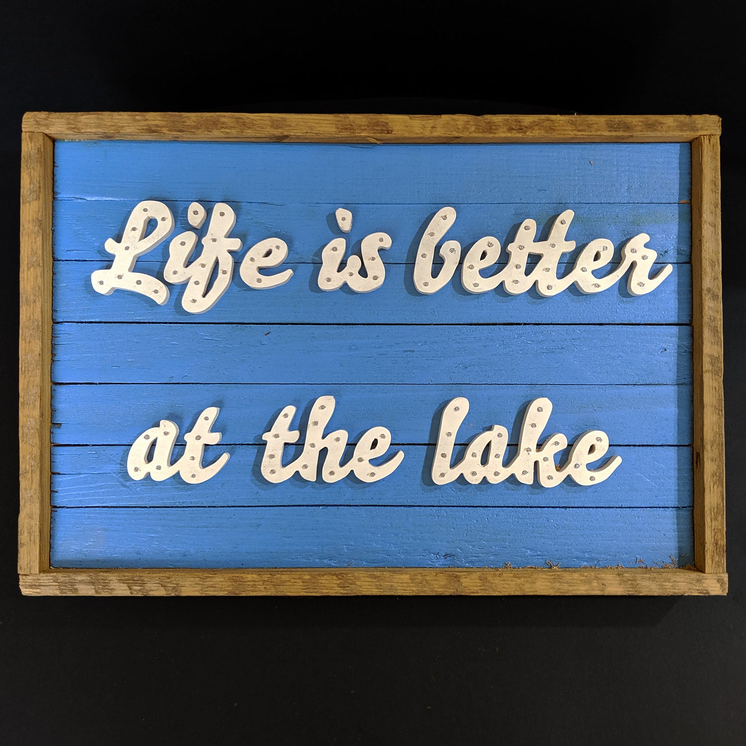 Reclaimed Wooden Scrolled 'Life is better at the lake' Sign