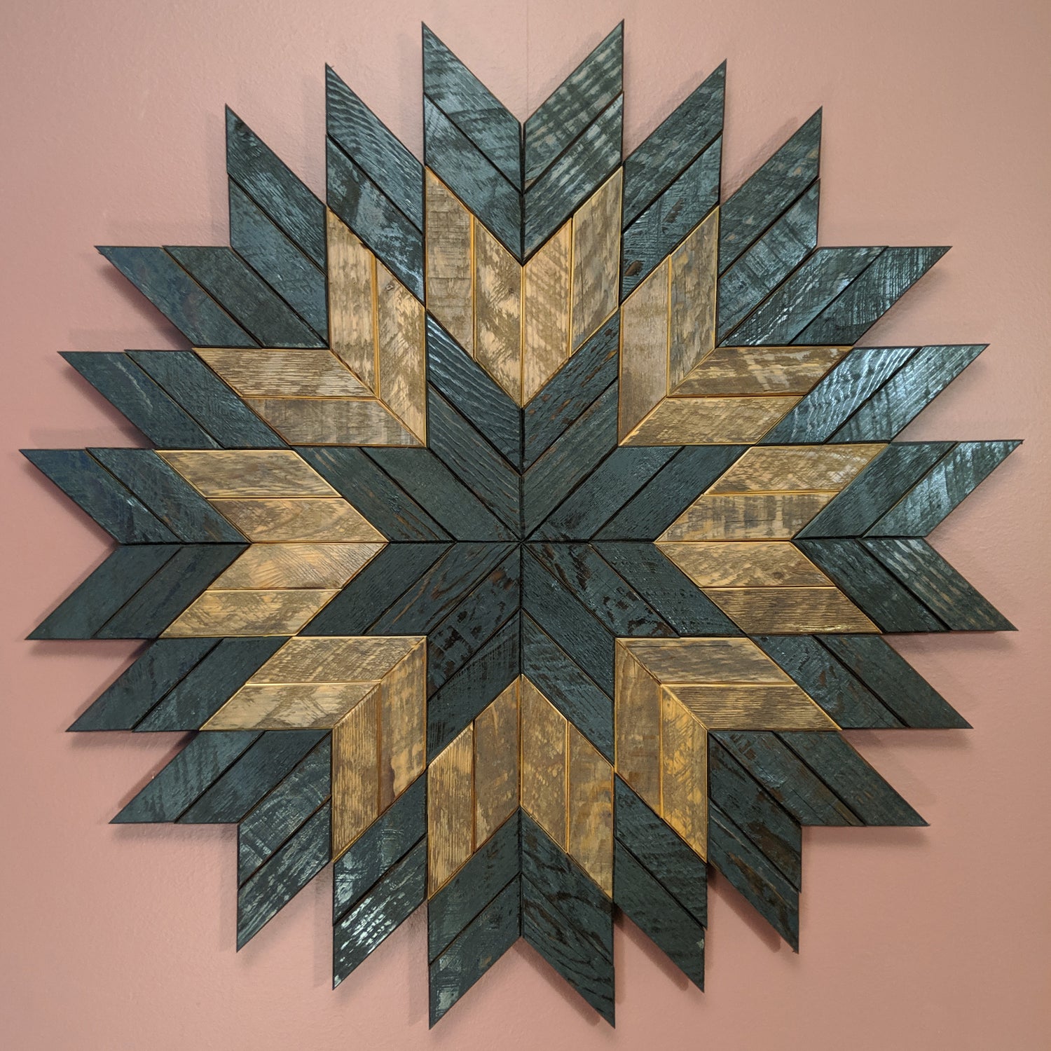 Handmade, one of a kind artwork, using reclaimed tobacco sticks. This striking design is made with two contrasting coloured pieces. Finished with protective polyurethane.