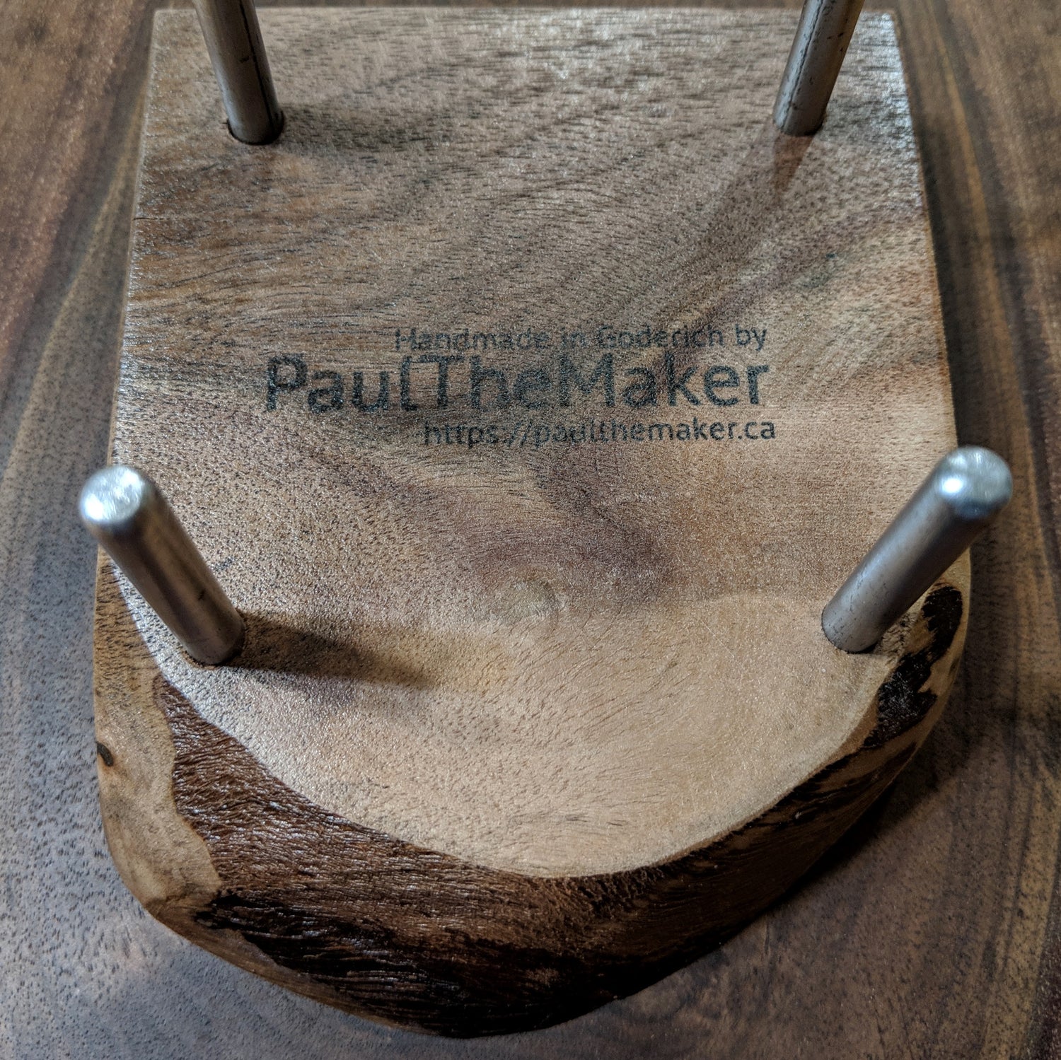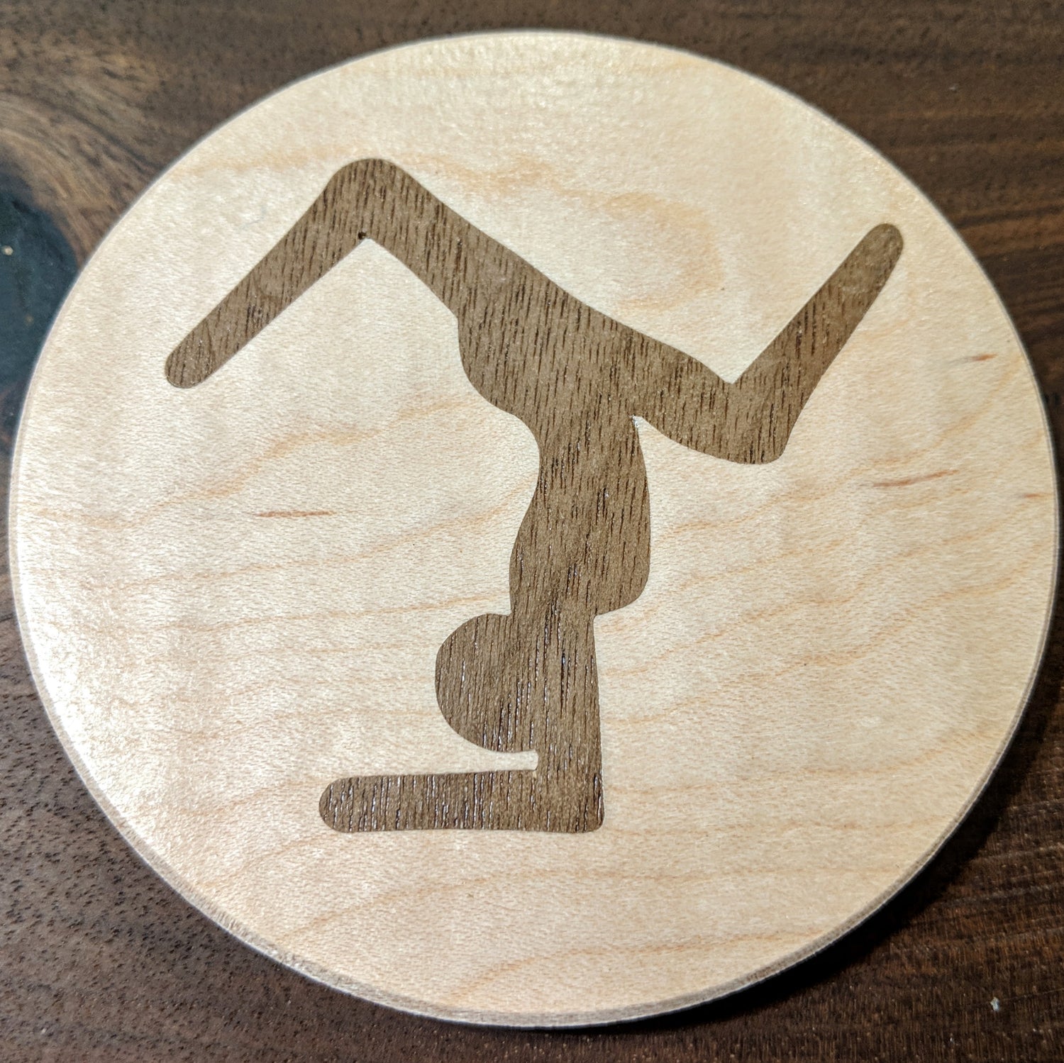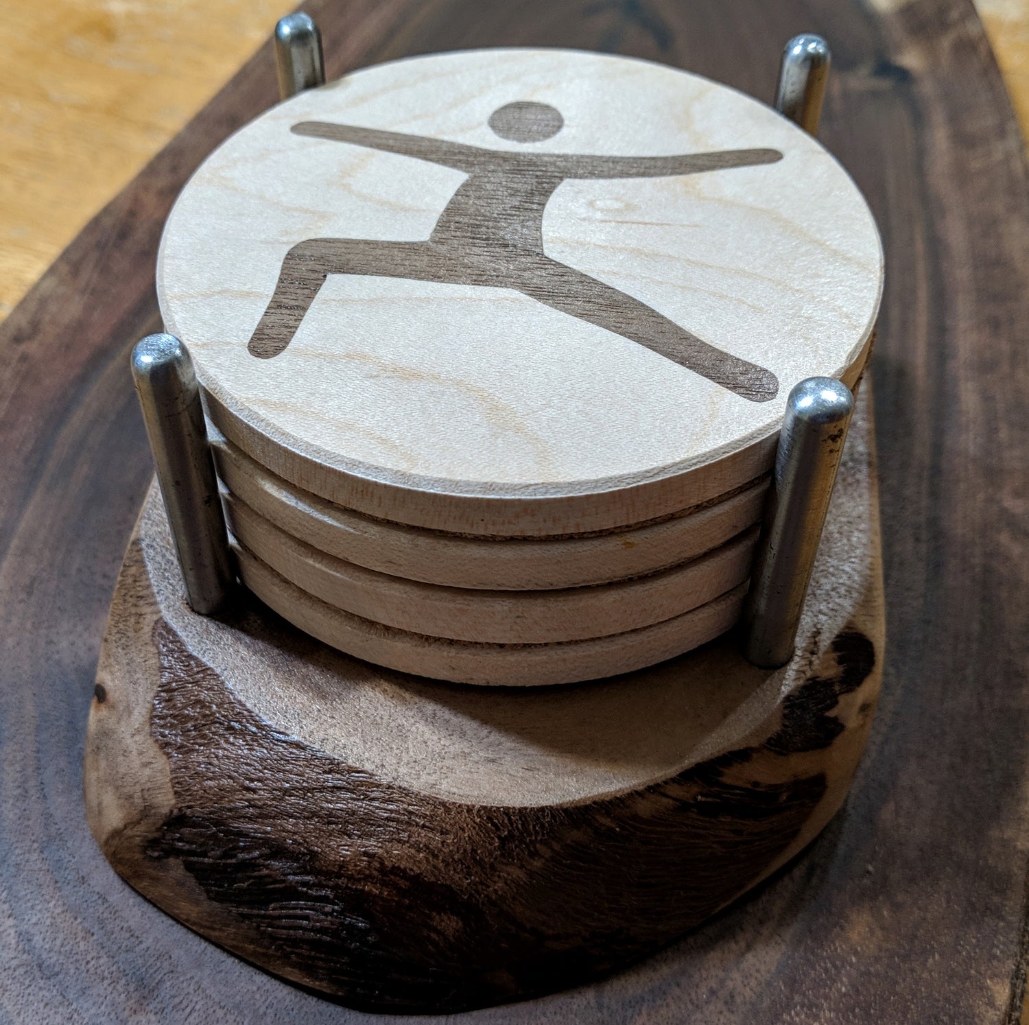 Set of four handmade inlayed Yoga Pose Coasters. Made with maple and walnut with a live edge walnut base.